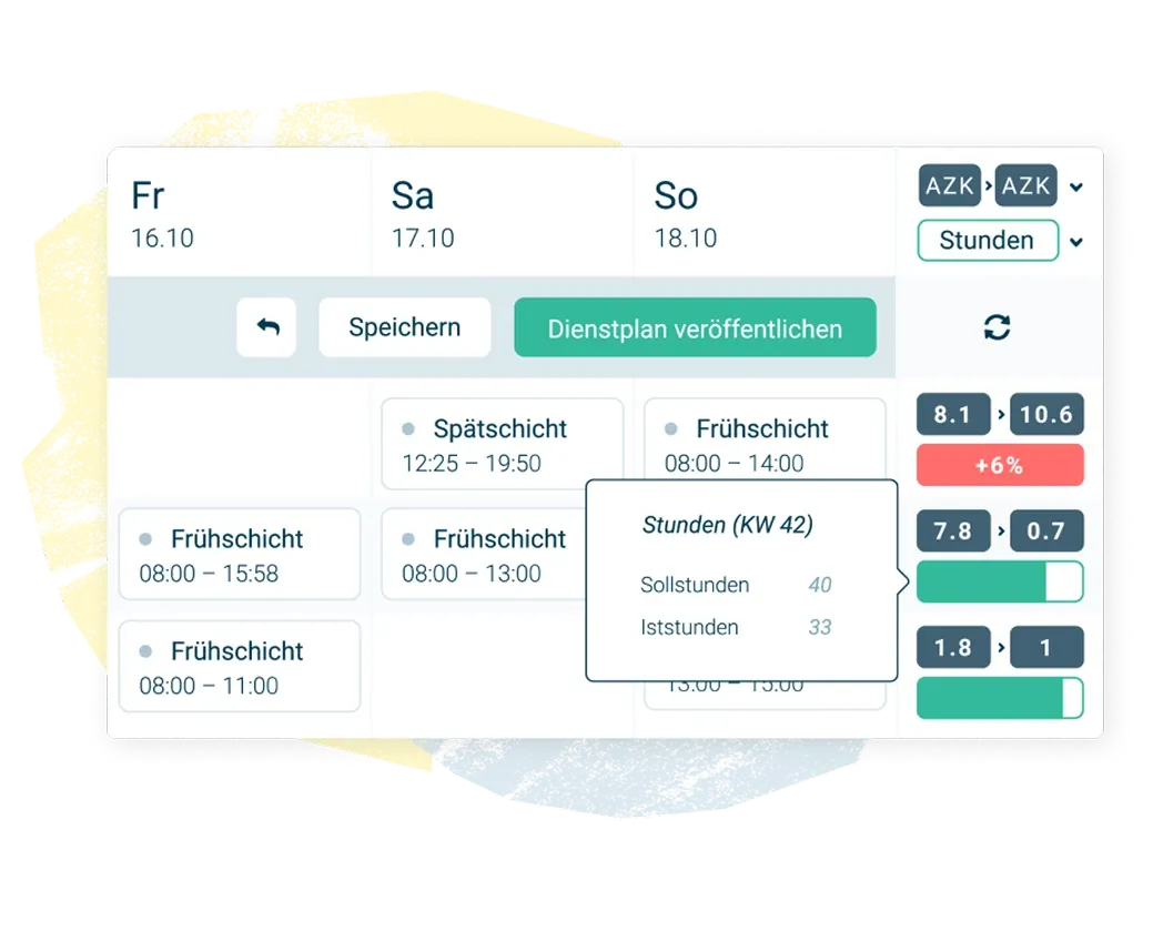 - Berücksichtigung von Vorgaben: Wunschzeiten, Abwesenheiten und gesetzliche Regelungen werden direkt im Plan berücksichtigt.